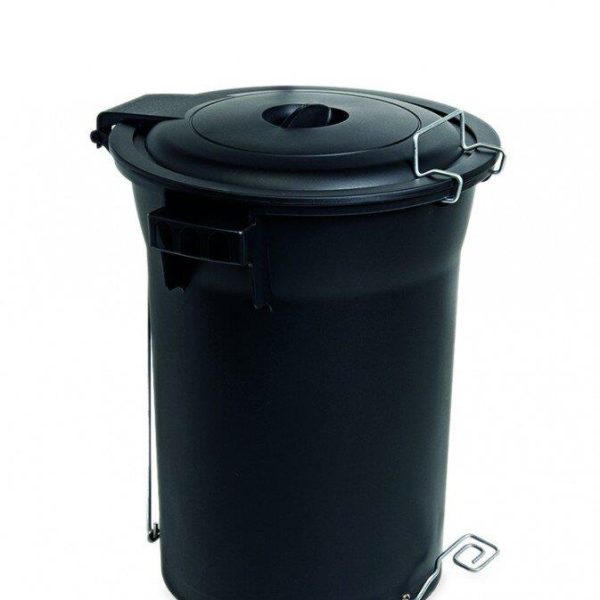Balde em polipropileno com tampa com sistema de fecho metálico. Pedal metálico.