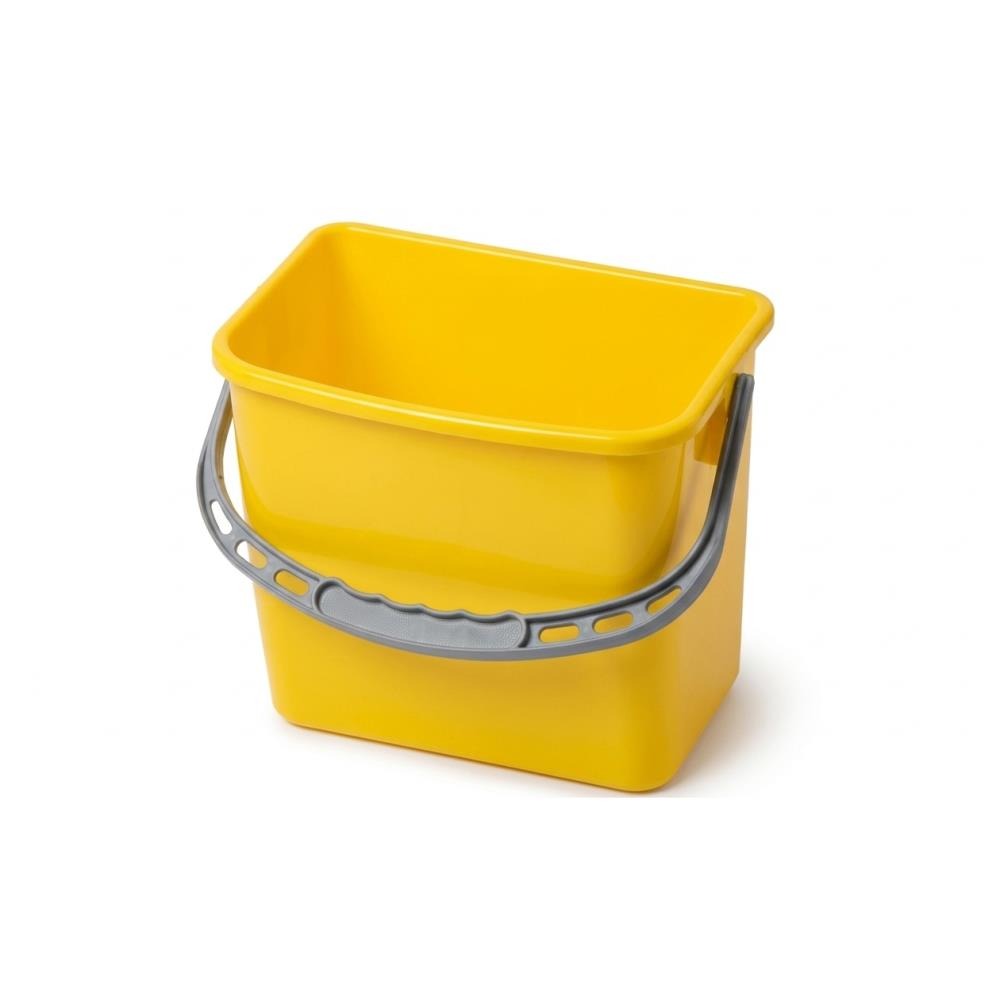 Balde de lavagem amarelo de 6 litros de capacidade para ser usado em carros de limpeza.