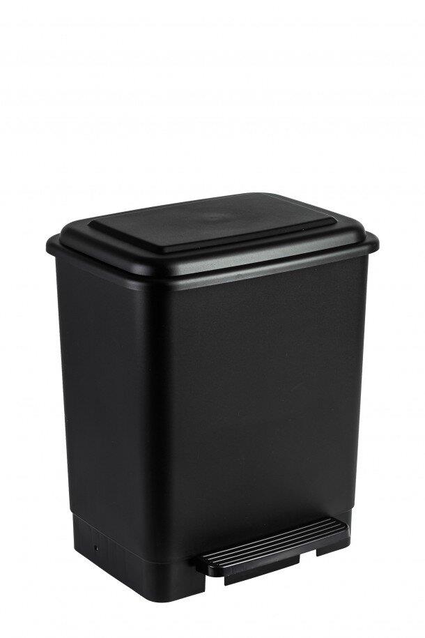 Balde preto em polipropileno com 26 litros de capacidade com pedal.