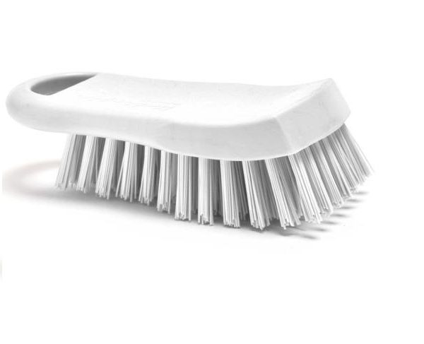 Escova de mão branca para tábuas, com cerdas duras, adequada para a indústria alimentar, para limpar zonas especialmente delicadas e zonas nas quais exista o risco de contaminação com alimentos, como indústria de carnes, adegas, embaladoras, engarrafadoras, explorações piscícolas, indústria farmacêutica ou laboratórios de investigação.