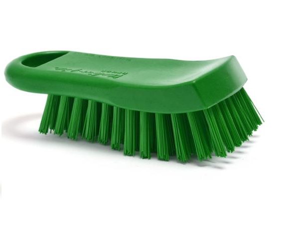 Escova de mão verde para tábuas, com cerdas duras, adequada para a indústria alimentar, para limpar zonas especialmente delicadas e zonas nas quais exista o risco de contaminação com alimentos, como indústria de carnes, adegas, embaladoras, engarrafadoras, explorações piscícolas, indústria farmacêutica ou laboratórios de investigação.
