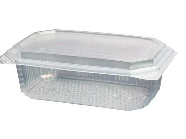 Forma transparente de plástico, com tampa incorporada e 1000ml de capacidade, para transporte comodo e fácil de alimentos sólidos, líquidos ou em pó. Embalagem estanque e empilhável, apta para micro-ondas e indústria alimentar.