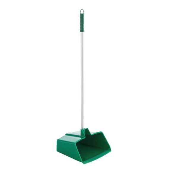 Pá do lixo plástica com cabo em alumínio e guia em borracha para facilitar a limpeza.