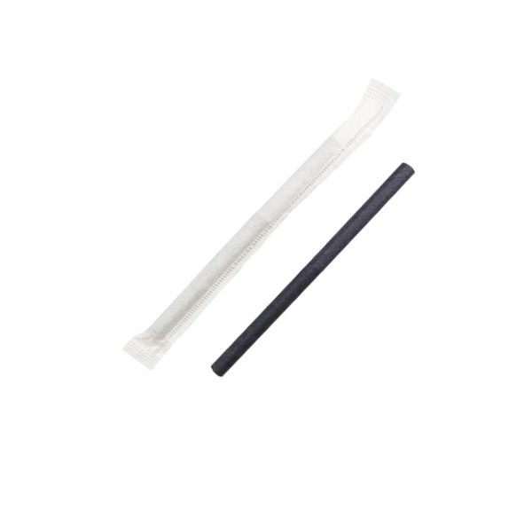 Palha de papel preta individual, reciclável e biodegradável, com 200mm de comprimento. Apta para a indústria alimentar.