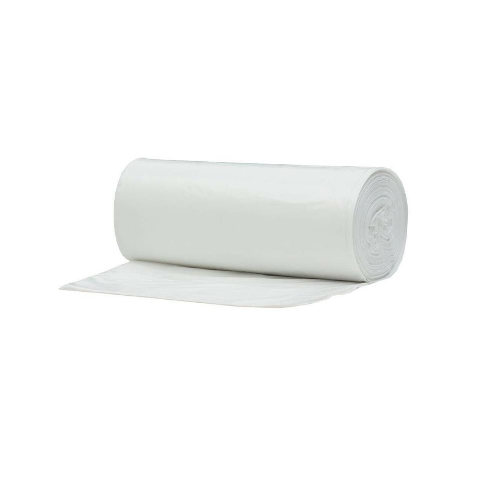 Saco do lixo branco industrial com 50L de capacidade. Resistentes, recicláveis, ideais para uma gestão sustentável e cómoda de resíduos em qualquer estabelecimento.