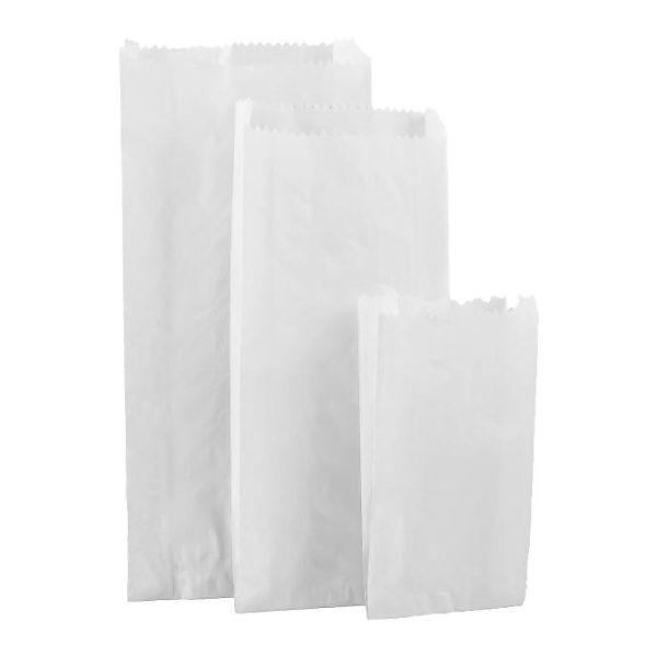 Saco de papel branco de abertura fácil ecológico e reciclável. Apto para a indústria alimentar, ideal para o transporte de qualquer tipo de produto ou bem alimentar, nomeadamente para frutarias, mercados, padarias, pastelarias, churrasqueiras, snack-bares, restaurantes e outros estabelecimentos no setor da restauração.