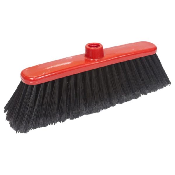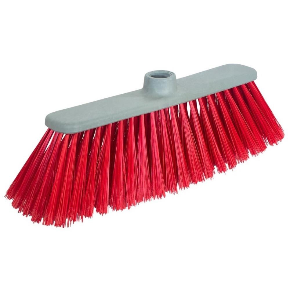 Vassoura resistente retangular, com a base em tom creme e as cerdas na cor vermelha.
